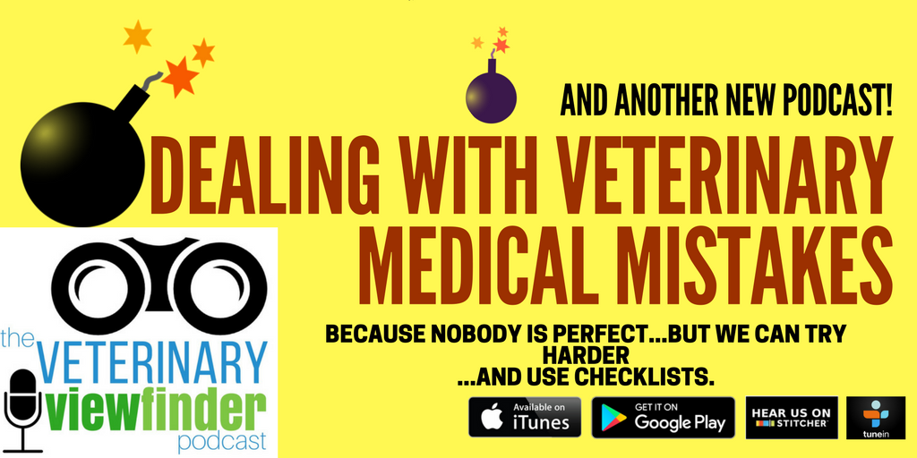 Medical mistakes are estimated to result in over 250,000 human deaths in the U.S. each year. What about in veterinary medicine? What types of medical mistakes do we commonly encounter in our animal patients? What are steps we can do prevent medical mistakes and how should a veterinary clinic team respond when mistakes are made? Host veterinarians Drs. Ernie Ward and Cyndie Courtney along with registered veterinary technician Beckie Mossor discuss real-world problems, their experiences, and offer suggestions and advice on avoiding medical mistakes in your clinic. Dr. Ward also shares a unique program from Australia to help you reduce medical errors. Join the conversation and share your thoughts on Facebook/VeterinaryViewfinder and Twitter @VetViewfinder.