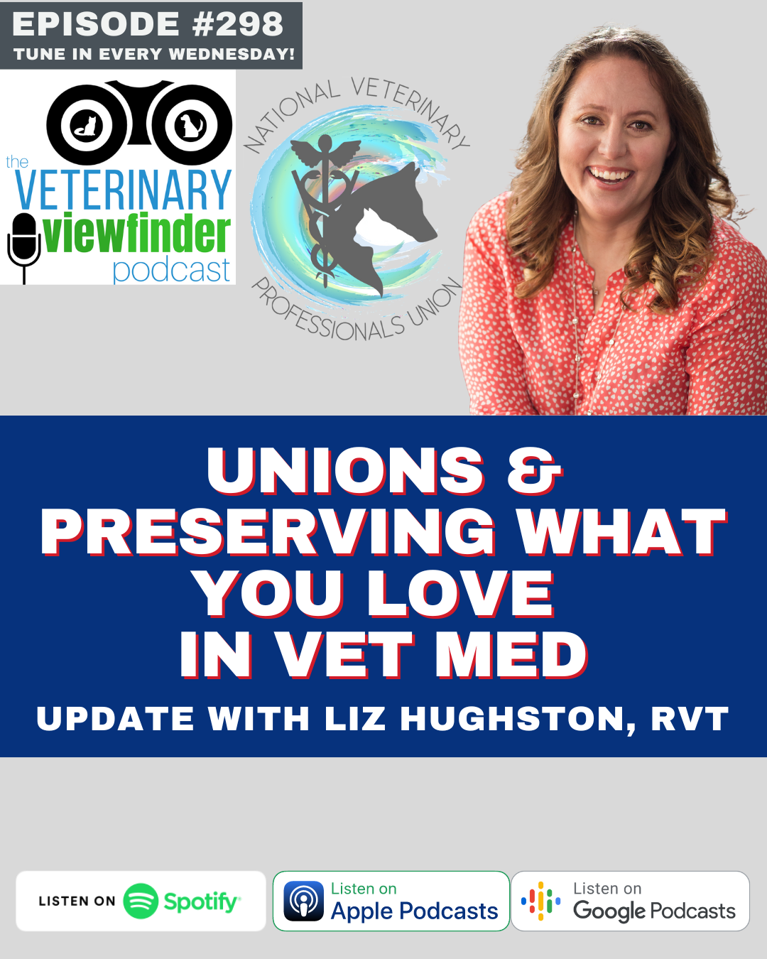 What’s the latest news on the unionization movement in US veterinary clinics? What is a union and how can forming them help veterinary professionals preserve the best aspects of their jobs while improving many of the worst conditions? This week we welcome back vet tech extraordinaire Liz Hughston MEd, RVT, CVT, LVT, LMVT, VTS (SAIM) (ECC) to share the latest developments on veterinary professionals’ unionization. Viewfinders, hold on to your seat…this is one fast-paced ride!